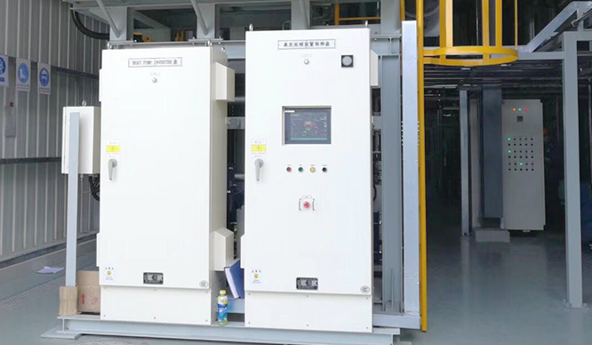 此濃縮裝置,由與壓縮水蒸氣的熱泵所組合而成,使蒸發(fā)器內(nèi)保持一定蒸發(fā)溫度的輔助熱源(蒸汽),使蒸發(fā)器內(nèi)保持真空狀態(tài)的真空泵,及為使液體進行循環(huán)或移送的泵類所構(gòu)成。